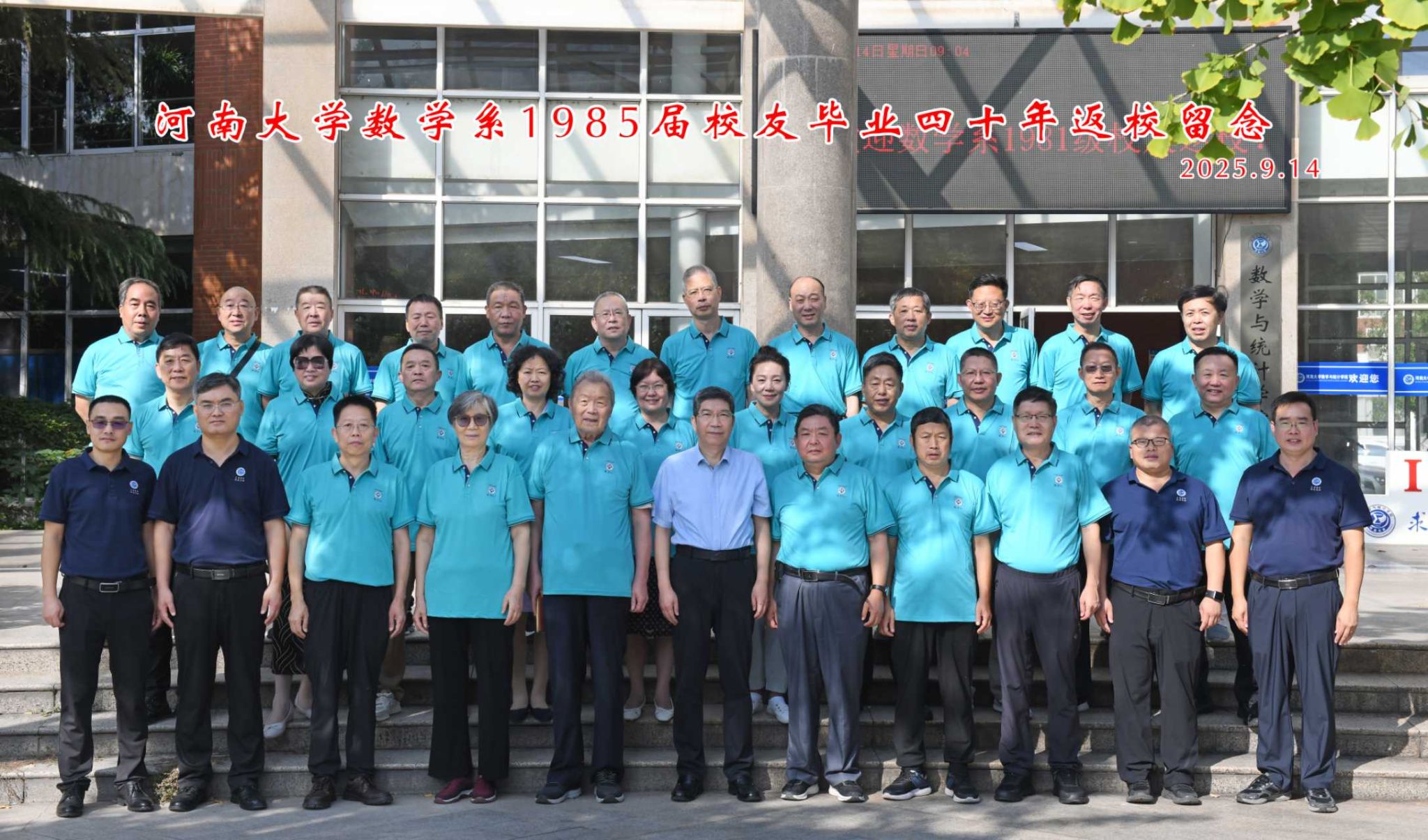 9月14日,河南大学数学系85届三十余名校友重返母校,共庆毕业四十周年,重温青春记忆,展望美好未来。学院党委书记曹志伟,院长韩小森,副院长杨一平、解俊山,教师代表王秀琴、史存海参加活动。