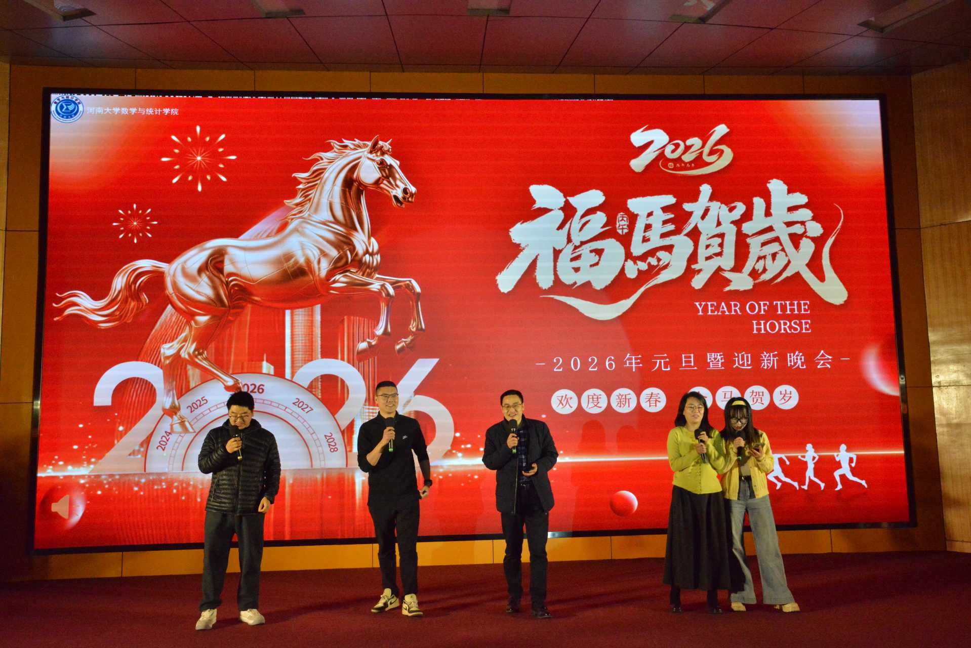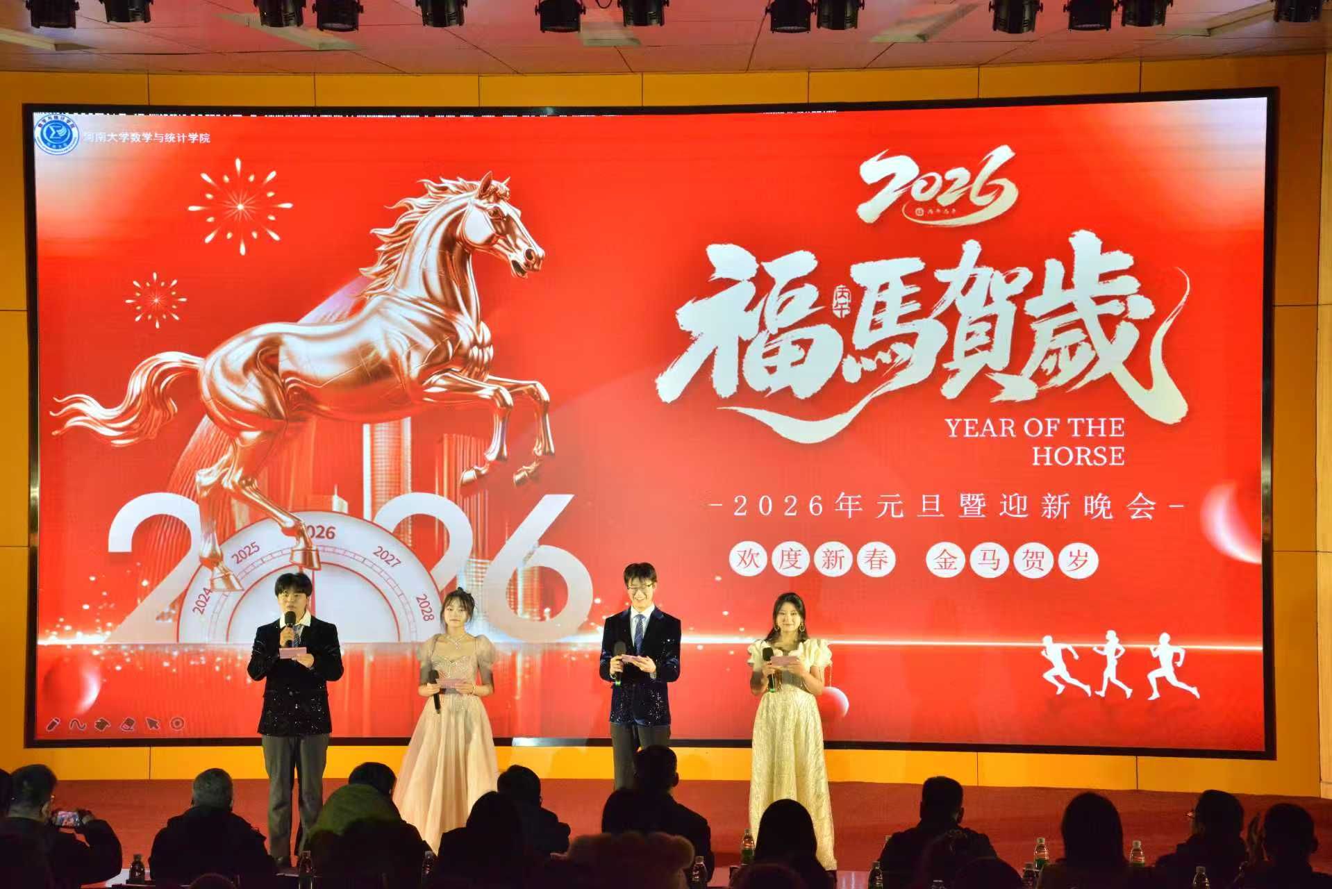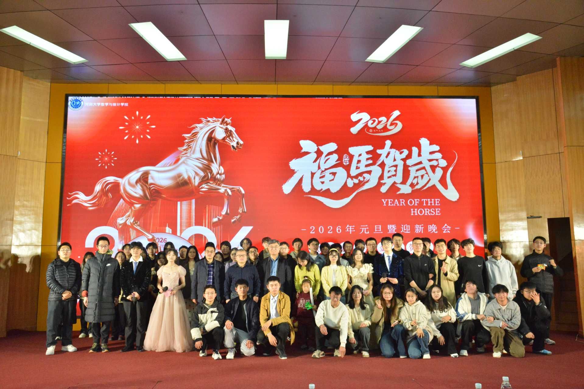 时光流转,辞旧迎新。12月27日晚,河南大学数学与统计学院“2026年元旦暨迎新晚会”在金明校区计算机二楼报告厅举行。校党委学生工作部部长樊小勇,团委副书记董文,教育学部党委副书记王刚,数学与统计学院党委书记曹志伟,院长韩小森,副院长杨一平、解俊山、唐恒才、王中华,学院辅导员及各年级学生代表400余人齐聚一堂,共迎新春。