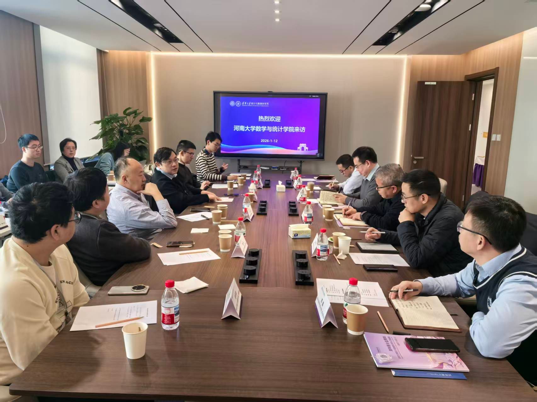1月12日上午,调研组首站赴北京大学数学科学学院进行座谈,陈大岳院长等学院领导班子成员系统介绍了其在学科发展、师资队伍建设、人才培养等方面的创新理念与具体举措,双方围绕“十五五”发展规划、拔尖人才培养、青年教师成长等展开了深入交流。下午,调研组前往清华大学统计与数据科学系交流,系主任刘军及班子成员、师生代表出席。双方聚焦统计学科前沿动态、人才培养模式创新等内容交换意见,并就未来如何拓展合作领域、建立常态化交流机制进行了深入探讨。