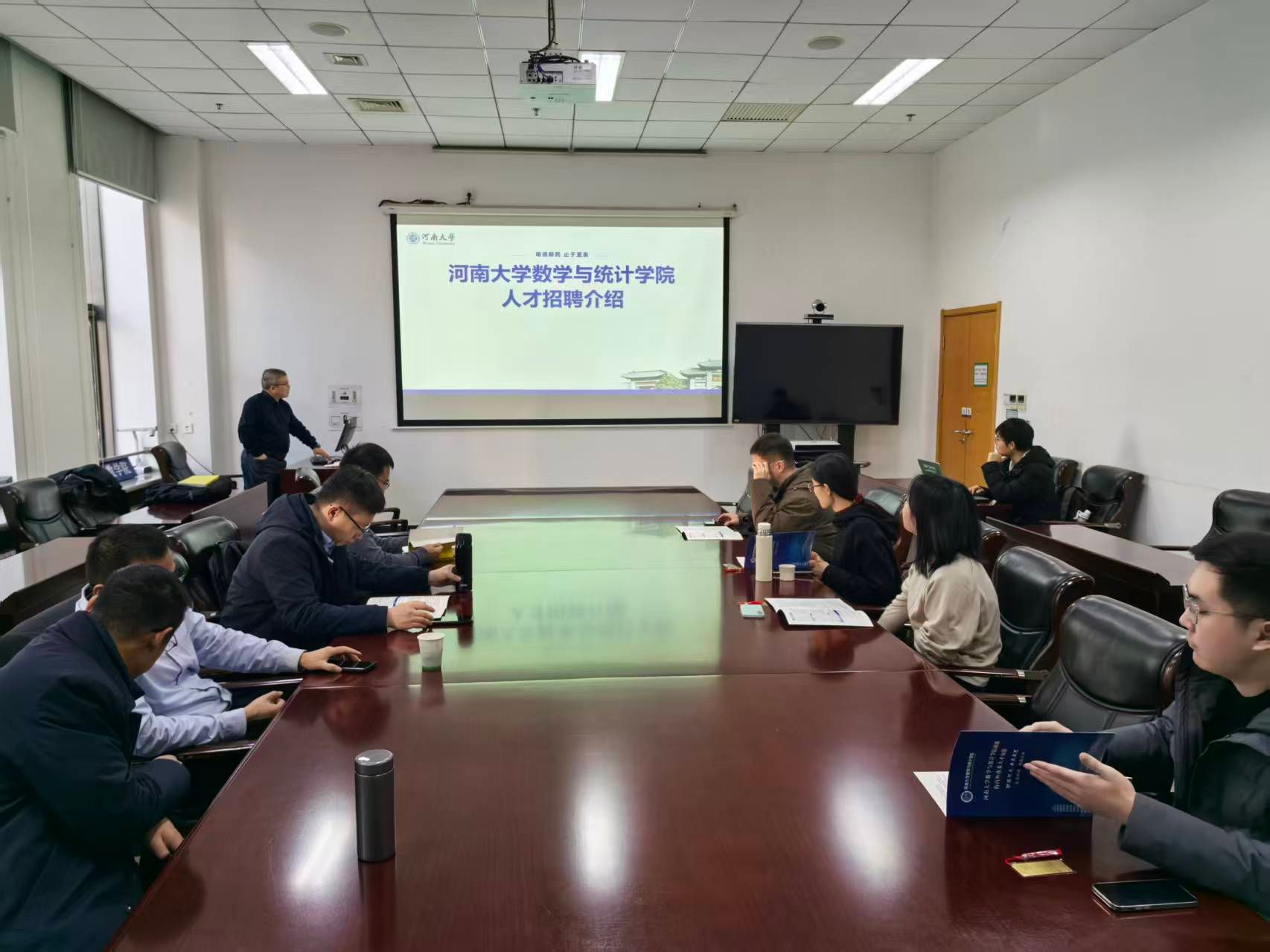 1月13日上午,调研组访问北京师范大学数学科学学院。学院党委书记唐仲伟等领导班子成员就“十五五”规划编制、拔尖人才培养、社会服务拓展、学生创新创业及第二课堂建设等方面分享了经验,双方进行了富有成效的讨论交流。下午,韩小森在中国科学院数学与系统科学研究院进行人才招聘宣讲,全面介绍了学校与学院的发展近况、学科优势、人才政策及福利保障体系,并与多位青年学者进行一对一交流,就研究方向契合、团队融入等关切问题作了详细解答。