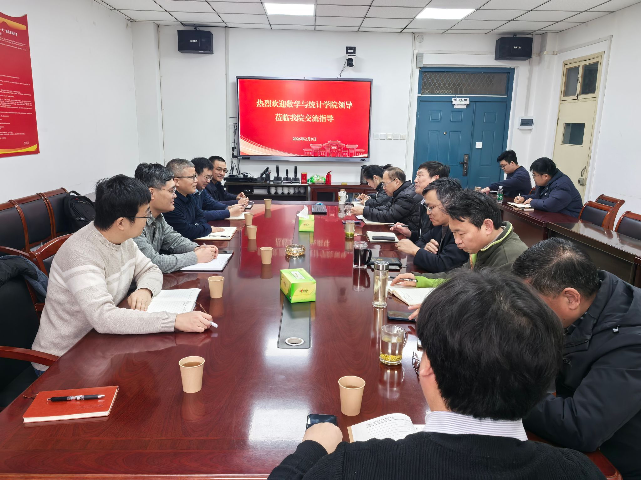 为深化跨学科协同发展,借鉴物理与电子学院在学科建设、教学改革、科研创新及人才培养等方面的先进经验,拓宽办学思路,2月9日,数学与统计学院党委书记曹志伟、院长韩小森带队,学院领导班子及相关科室负责人一行赴物理与电子学院开展调研交流。