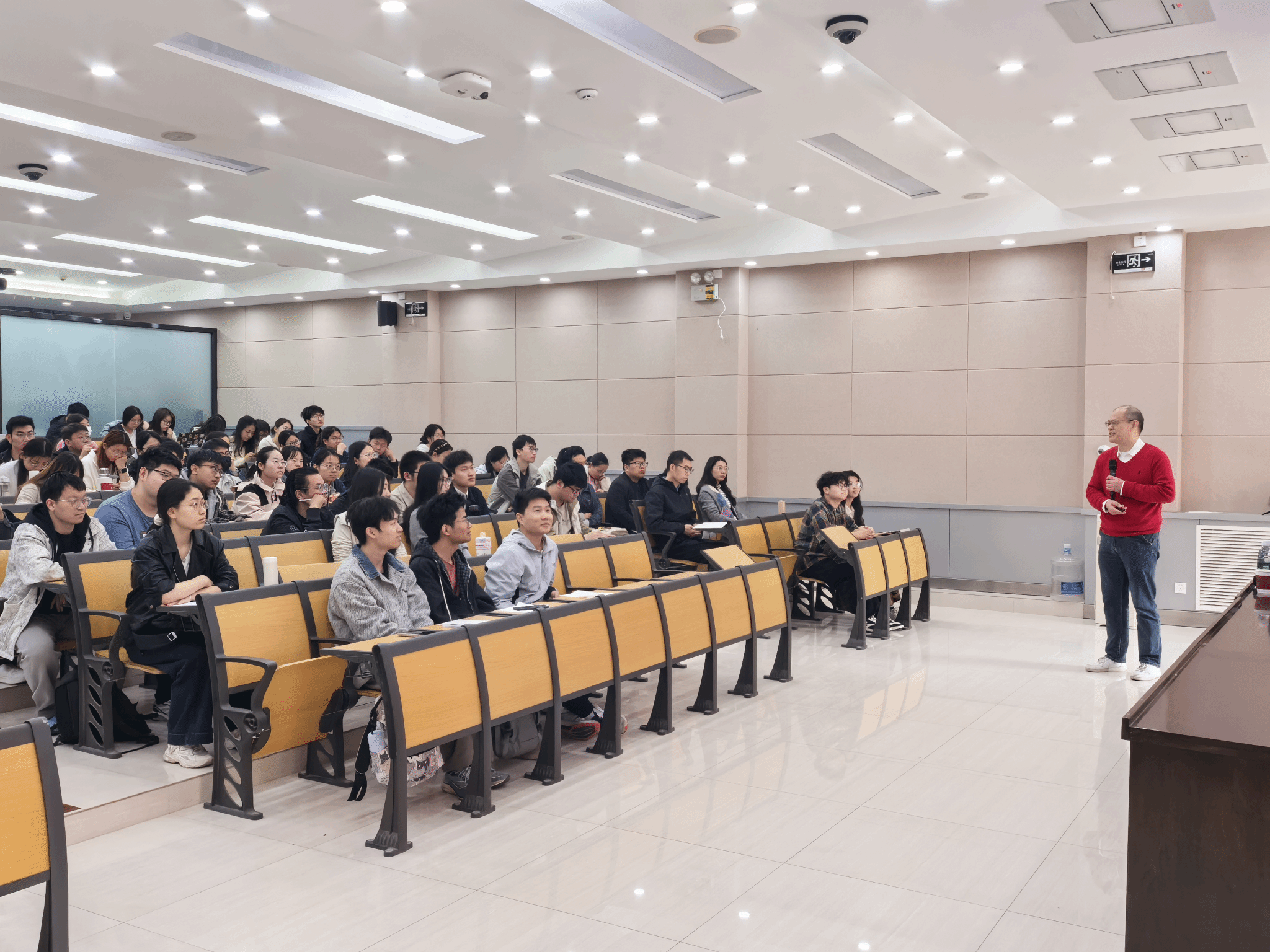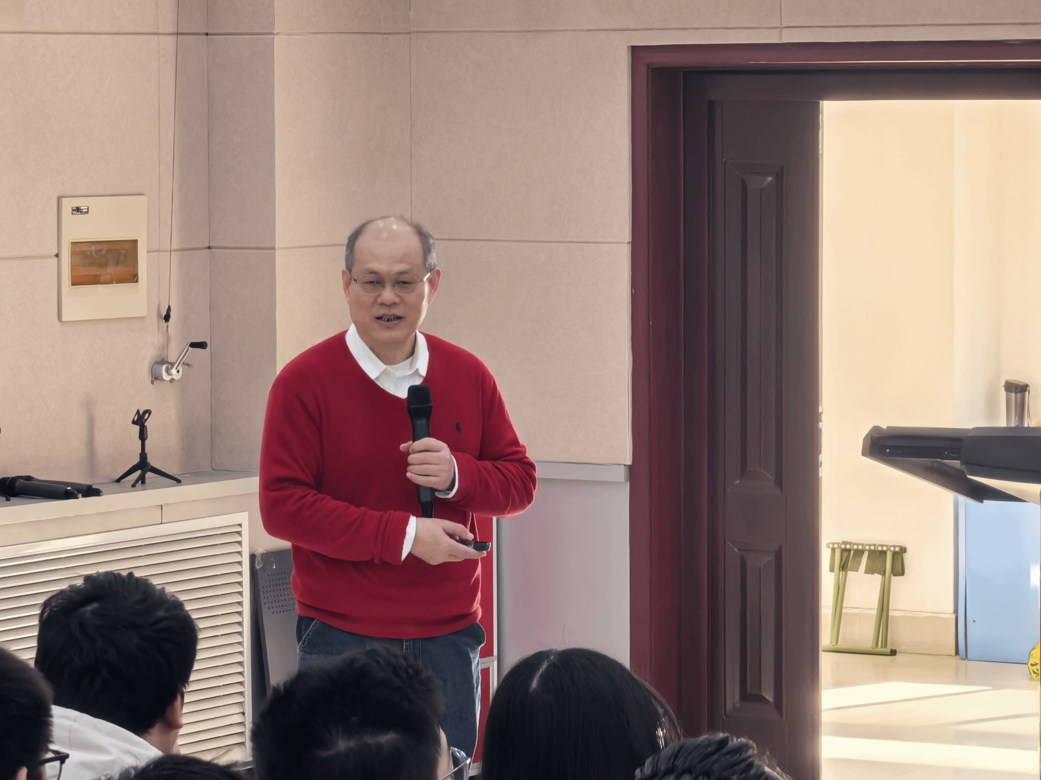 互动交流环节,与会师生围绕Fourier分析的应用背景、偏微分方程的学习策略及数学建模等问题踊跃提问,张平院士逐一细致解答,并以深厚学养与严谨治学态度给予师生针对性指导。