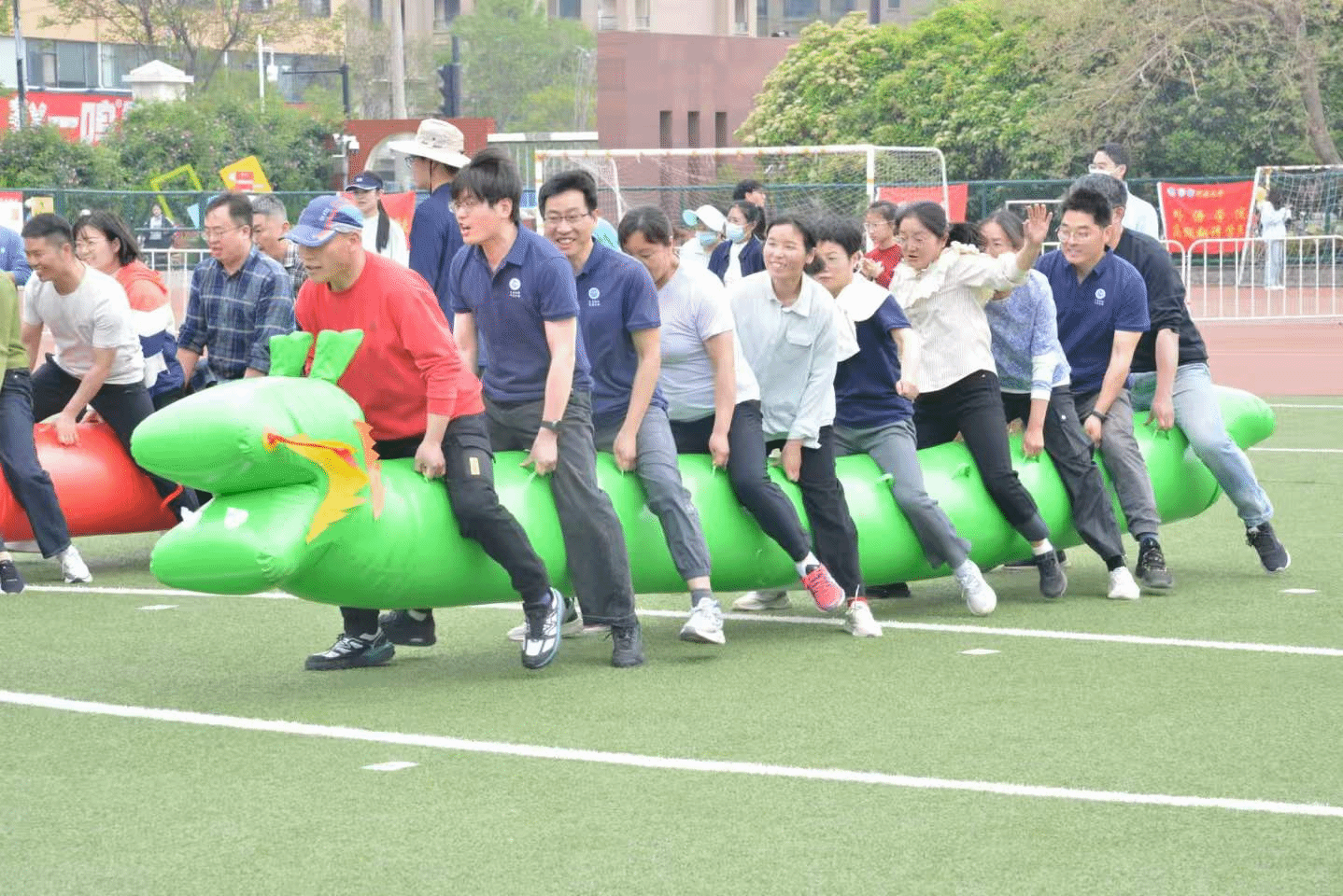 “左,右,左”一声声整齐的号子响起,一条“龙舟”在参赛者的驱动下向终点坚定驶去,它所承载的不仅是对胜利的希望,更是共度风雨的顽强信念。