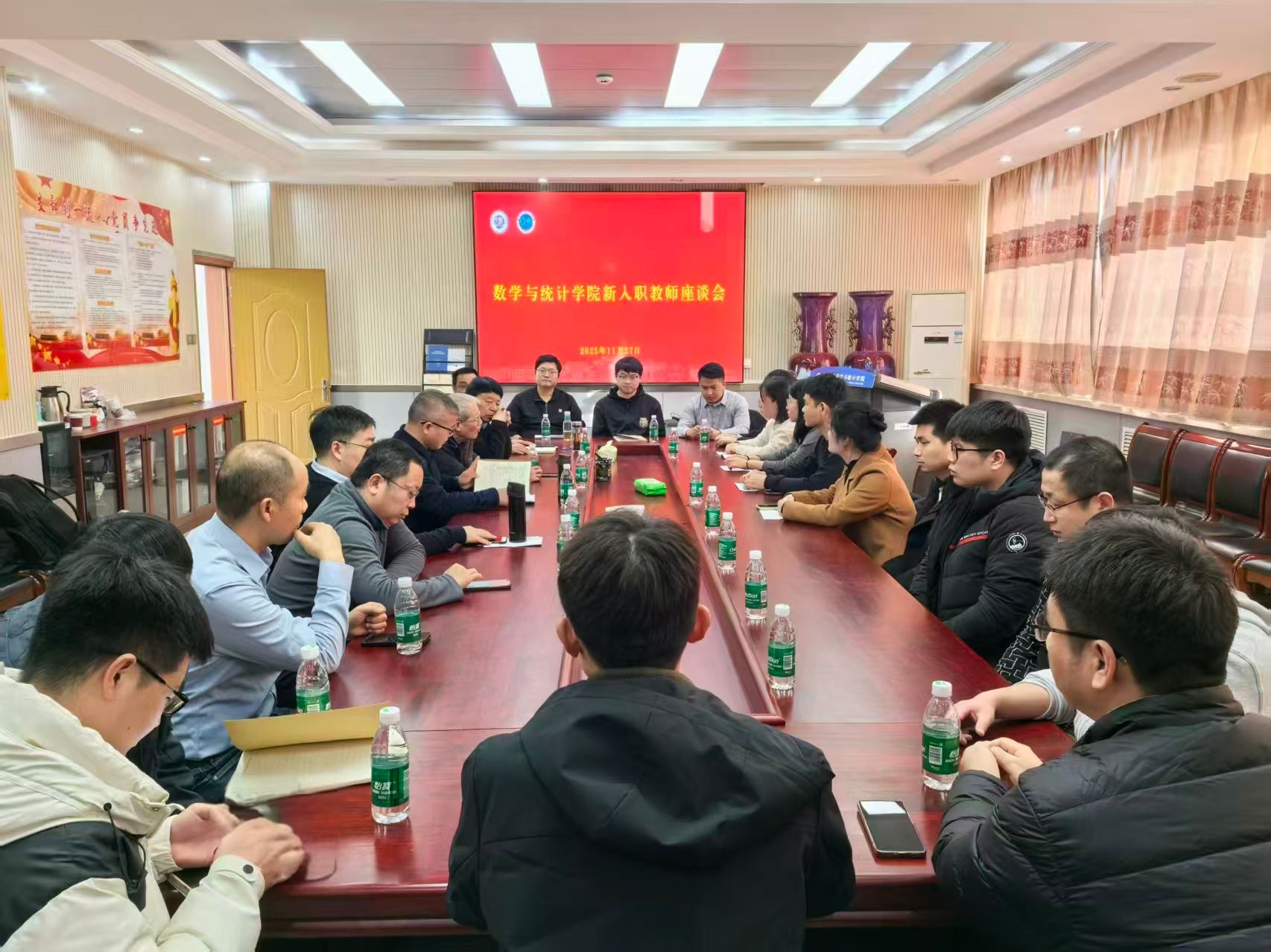 为深入了解青年教师工作和生活情况,帮助青年教师提升教学和科研水平,有针对性的加强人才培育,增强凝聚力,11月27日下午,数学与统计学院在二楼会议室召开青年教师座谈会,座谈会由学院副院长杨一平主持,近年入职的十余位教师和博士后参会。
